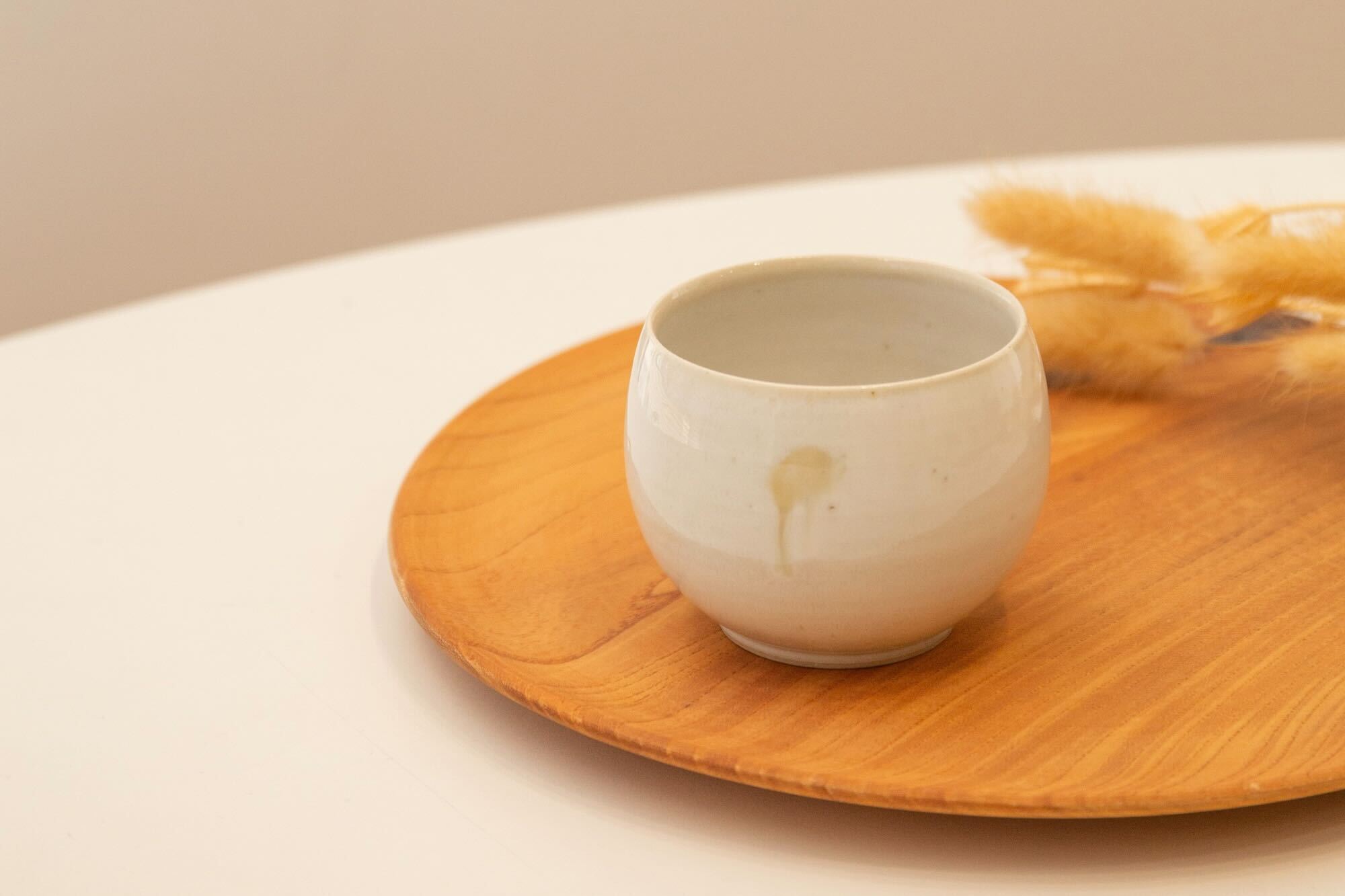 柔らかな白の中に、灰釉ならではの繊細な表情が静かに息づいています。手に馴染む心地よい質感と、日常にそっと溶け込むような佇まい。心落ち着くお茶の時間に、豊かな安らぎを添えてくれる一客です。