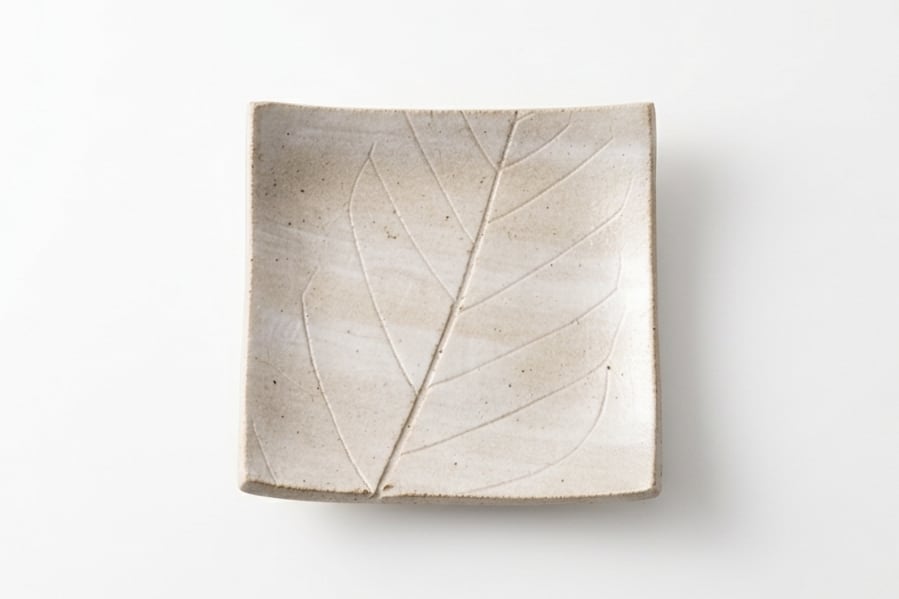 木の葉の息吹を封じ込めたような、象嵌(ぞうがん)技法で緻密に描かれた葉脈と、土の温もりが響き合います。伝統の品格を纏いつつ、現代の食卓に軽やかな彩りを添える逸品です。