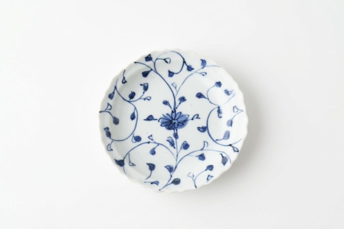 天平窯・岡晋吾氏が監修し、アリタポーセリンラボが手掛けた「輪花小皿染付万暦」。可憐な輪花の縁取りと、伸びやかな染付の唐草文様が響き合います。伝統的な万暦様式の品格を現代の感性で表現した、食卓を華やかに彩る贅沢な一客です。