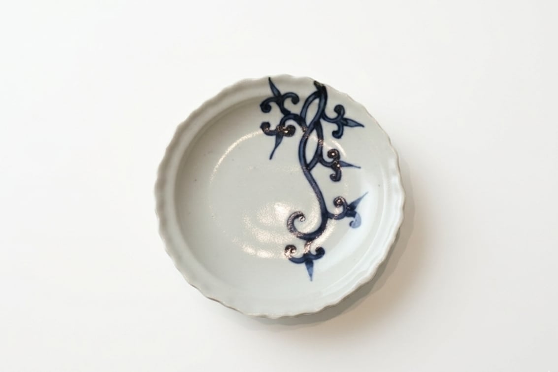 天平窯・岡晋吾氏が監修し、アリタポーセリンラボが手掛けた「輪花小皿竜唐草」。可憐な輪花の縁取りに、力強くも洗練された竜唐草の染付が躍動します。磁器の艶やかな白が呉須の青を引き立て、現代の食卓に華やかな品格と伝統の美を添える、日常使いにも贅沢な一客です。