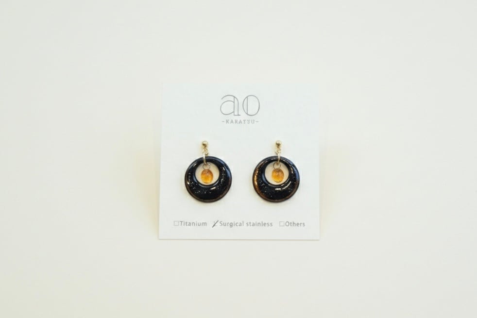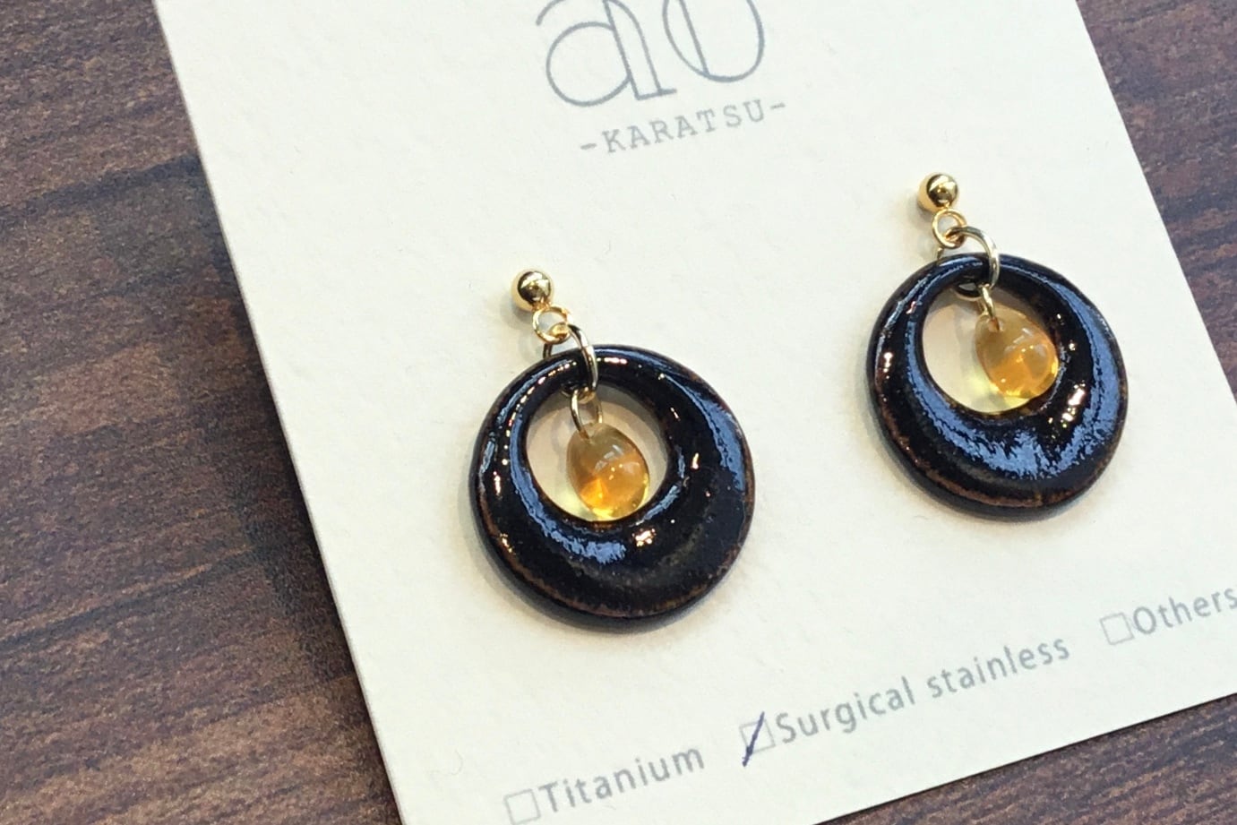 唐津焼アクセサリー作家「ao」として制作を続ける竹内磨澄さん。陶器づくりから仕上げまで、すべての工程を手仕事で行い、焼き物の新たな表現を追求しています。使用するのは、古くから唐津焼に受け継がれてきた陶土や釉薬。薄く成形すること自体が難しい素材でありながら、そこから繊細なアクセサリーを生み出す高い技術が光ります。
