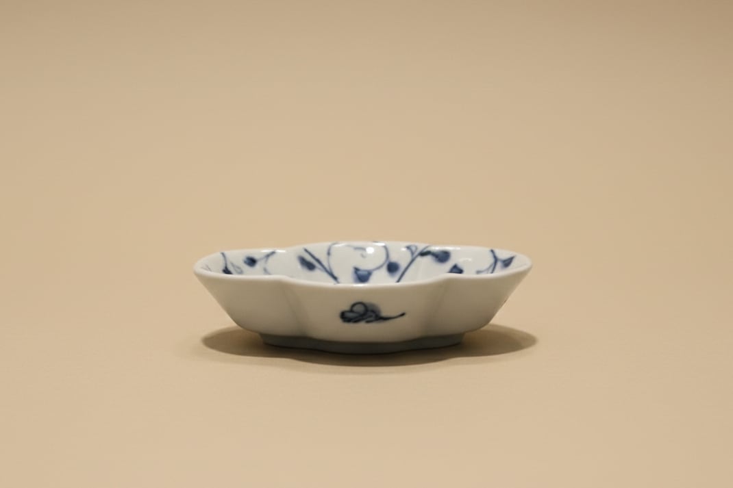 天平窯・岡晋吾氏が監修し、アリタポーセリンラボが手掛けた「木甲小付染付万暦」。柔らかな木甲型の造形に、伸びやかな筆致で描かれた染付の草花文様が調和します。伝統の様式美を日常に馴染むモダンな感性で仕上げた、食卓を品良く彩る贅沢な小器です。