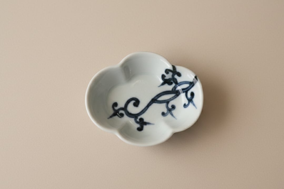 天平窯・岡晋吾氏が監修し、アリタポーセリンラボが手掛けた「木甲小付竜唐草」。優美な木甲型の曲線に、力強く描かれた竜唐草の染付が鮮やかに躍動します。伝統の意匠を現代的な感性で削ぎ落とした、食卓に心地よい緊張感と洗練された品格をもたらす小器です。