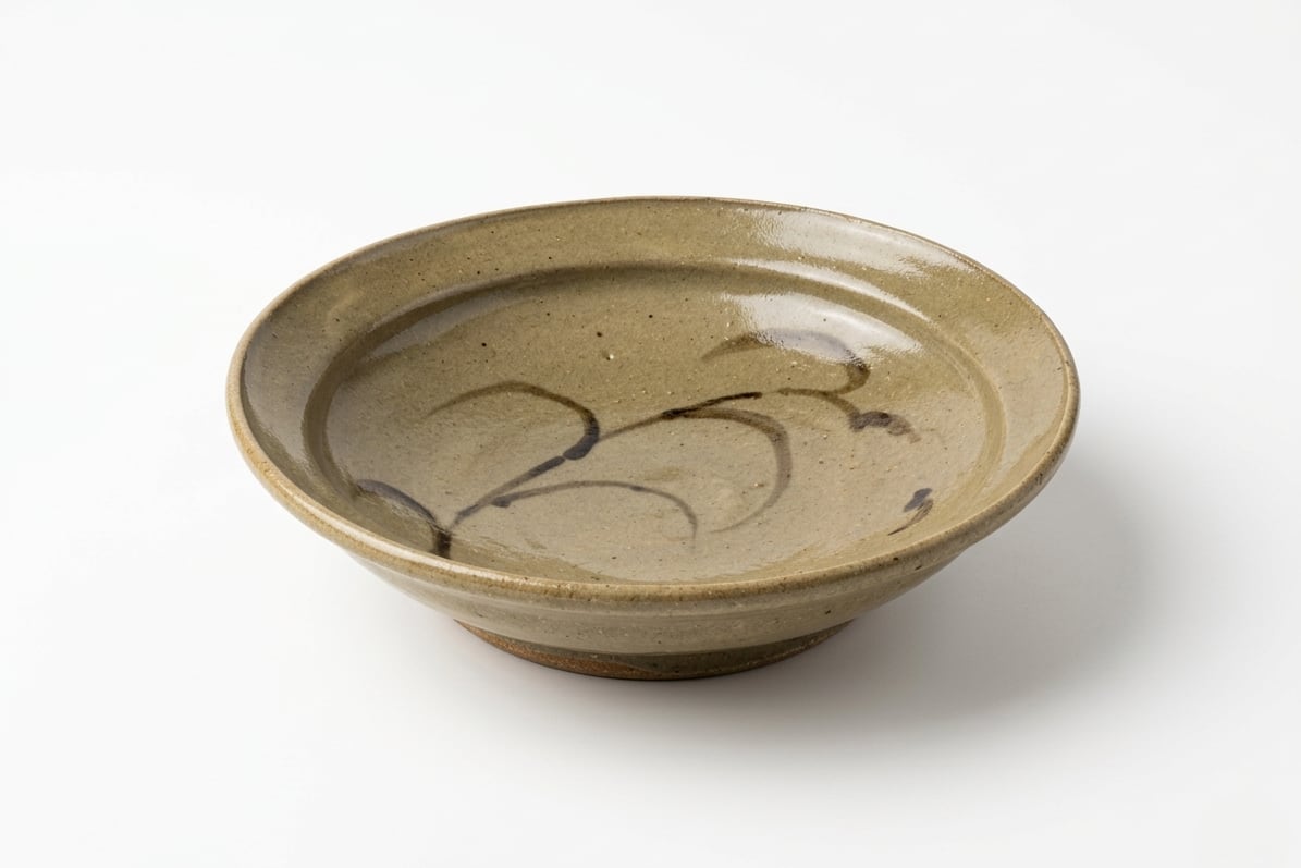 やわらかな土味に、のびやかな筆使いの絵付けが映える一枚です。程よい深さがあり、煮物や汁気のある料理にも使いやすいサイズ感。日常の食卓にあたたかな雰囲気を添えてくれます。