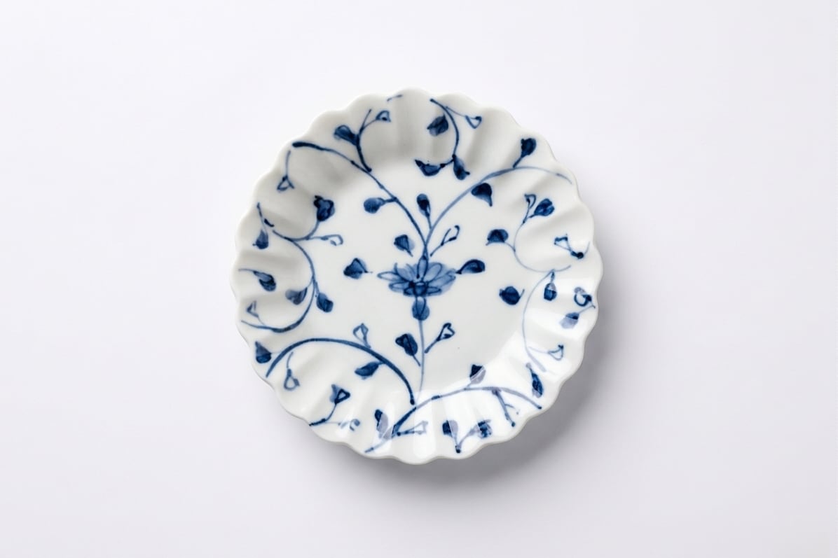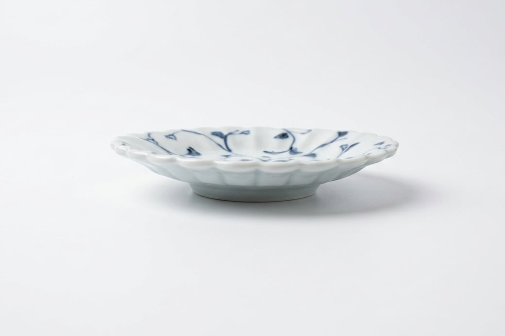 愛らしい菊型の造形に、伸びやかな筆致で描かれた草花文様が調和します。伝統の様式美を現代に馴染む感性で仕上げた、食卓を品良く彩る贅沢な小器です。